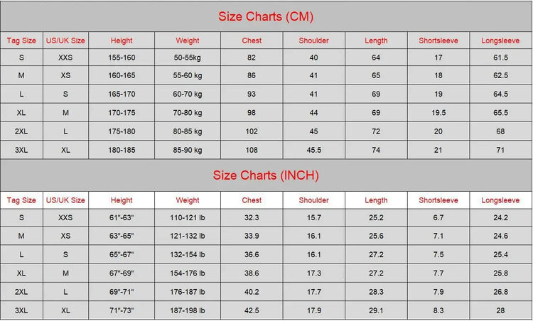 2). Measure your actual T-shirts Length, Chest, Shoulder... etc, compare with our size table.